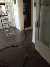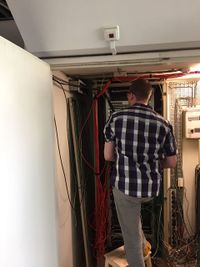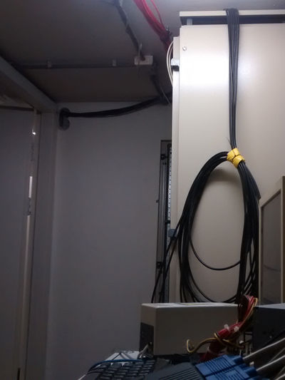 De kabels zijn teruggetrokken uit de projectruimte tot aan de groepenkast op de begane grond (naast herentoilet). Vanaf daar zijn ze naar de serverruimte gelegd: