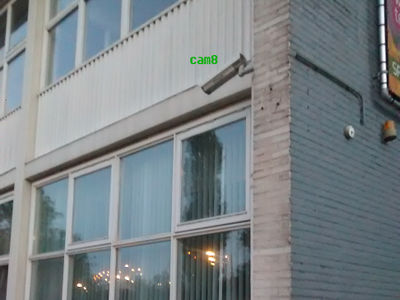 Er hangen nog 5 camera's rondom het gebouw. Het vreemde is dat er ook 2 camera's weg zijn. Er zouden dus 7 coax kabels moeten zijn, we hebben er helaas maar 6.