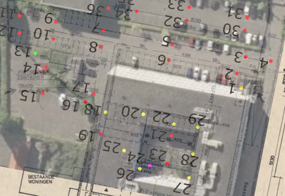 De probleemputten zijn allemaal geleegd en staan met elkaar in verbinding. Na installeren pomp op binnenplaats wordt al het water weggepompt. Ook bij de garage wordt het dan vrij snel weer droog.