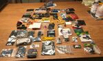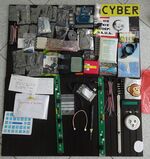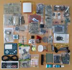 Nieuwe doos, meukdoosvakverdeler, TCRT5000 reflectiesensor, mosfets (P, N), 47µF 25V low ESR, 10 mm RGB LED, ds18b20 temperatuursensor, drukknopje, knijper, kabelstripmesje, USB-adapter µ→C, gulden, kwartje, dubbeltje, stuiver, HNP | - | |